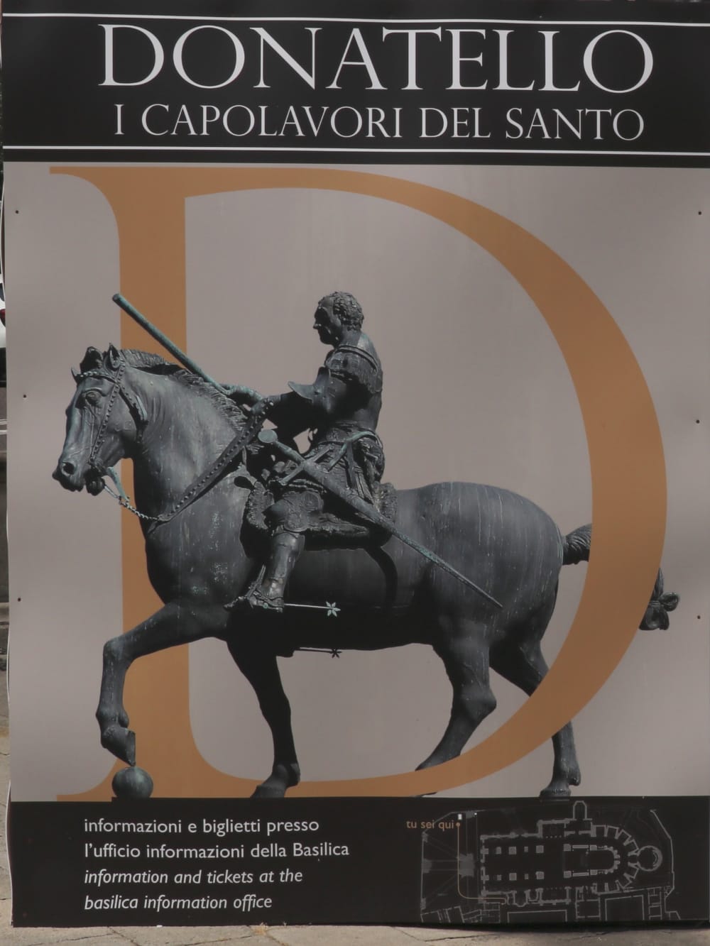 Outside the basilica, Donatello’s equestrian statue, known as Gattamelata, was the first bronze large equestrian statue cast since antiquity. It is currently being restored in situ.