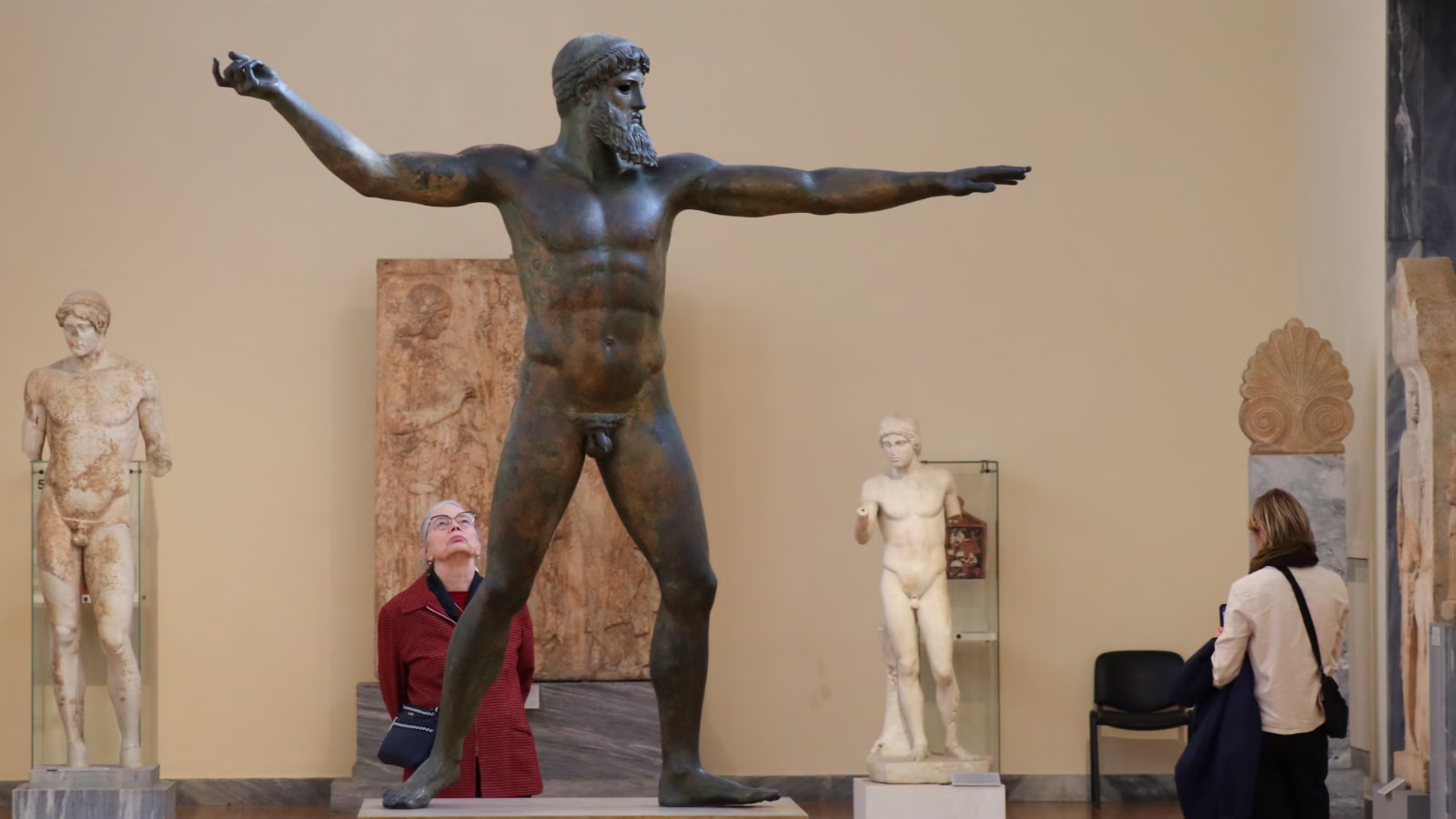 The Bronze Statue of Zeus of Artemision, created around 460–450 BCE, is one of the most remarkable surviving masterpieces of ancient Greek sculpture displayed in Athens. It showcases the artistic and technical mastery of the Classical period and remains an enduring symbol of ancient Greek civilization.