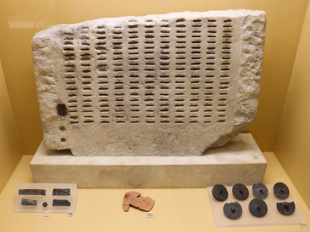 The oldest items are vases, figurines, and weapons found in graves and wells from the Neolithic, Bronze Age, and Mycenaean periods. More numerous and important are the items from the Classical and Late Classical periods. Note particularly the exhibits related to Athenian democracy and civic governance.