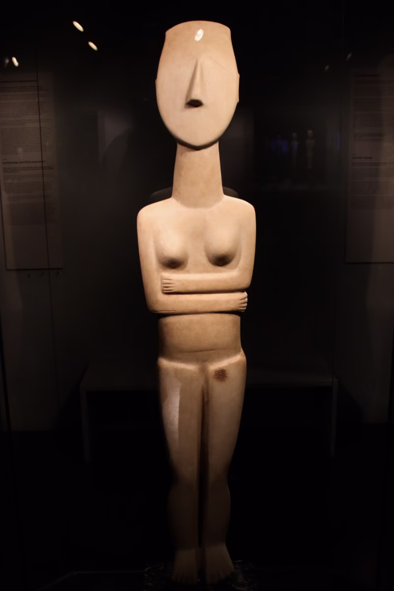 The largest figure in the museum is a 1.4 m tall female (but only 28 cm wide) of the Spedos variety. She was most likely used in public worship. (A slightly larger figure is in the National Museum.)