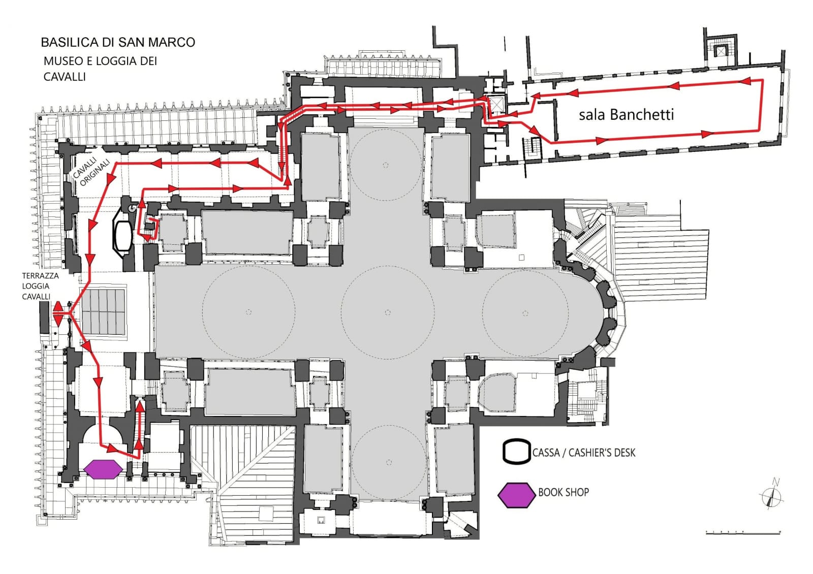 If adding the Museum and Loggia dei Cavalli, follow the same routes as above, but before exiting the main church at the rear of the left aisle, go to the inside of the nave and follow the stairs up to the museum. This allows visitors to see the original four bronze horses — copies are now displayed on the open-air balcony facing the piazza.