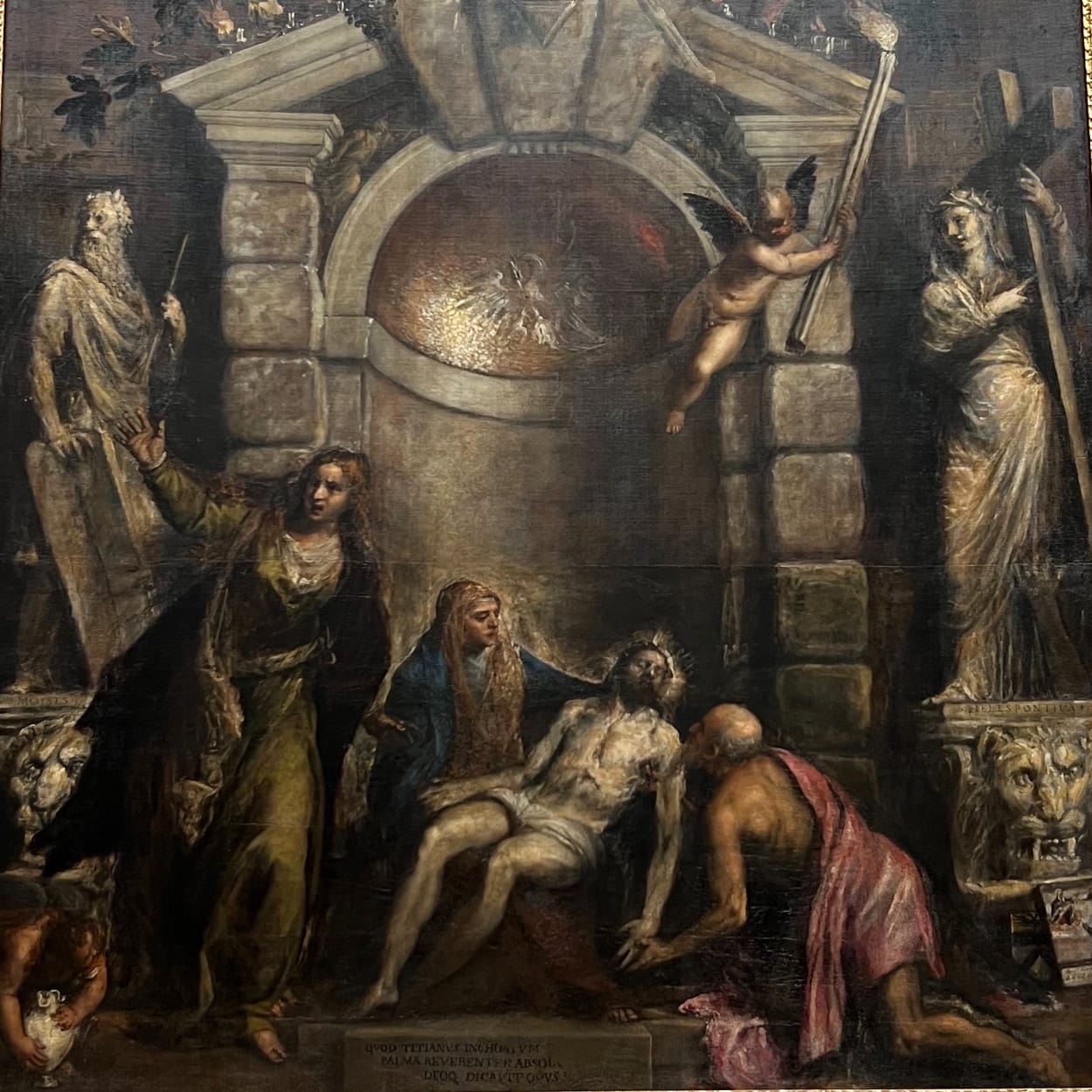 Titian: Pietà (Pietà) Titian’s final, unfinished work—dark, expressive, and deeply personal, intended for his own tomb in the nearby Frari Church.