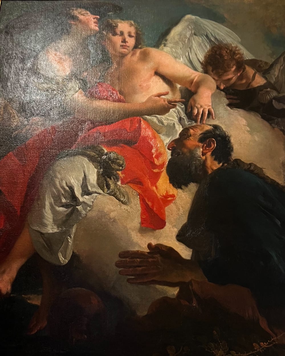 - Giovanni Battista Tiepolo: Hagar and Ishmael and Abraham and the Angels. (His son Giandomenico’s version, now in the Accademia, used the Apollo Belvedere as his nude angel model.)