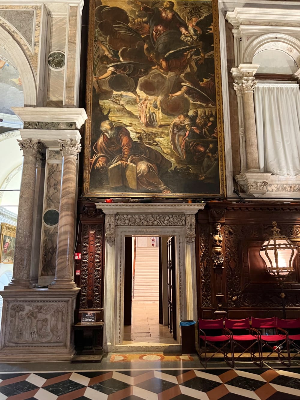 - Sala Dell’Albergo (meeting room off the main hall) — this is where Tintoretto’s project started with The Crucifixion.